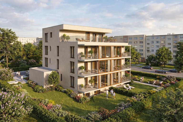 7 appartamenti in legno prefabbricato su base in cemento
